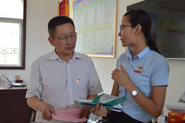 beat365学生处副处长廖兰芳与段寨村村支书讲解国家资助政策