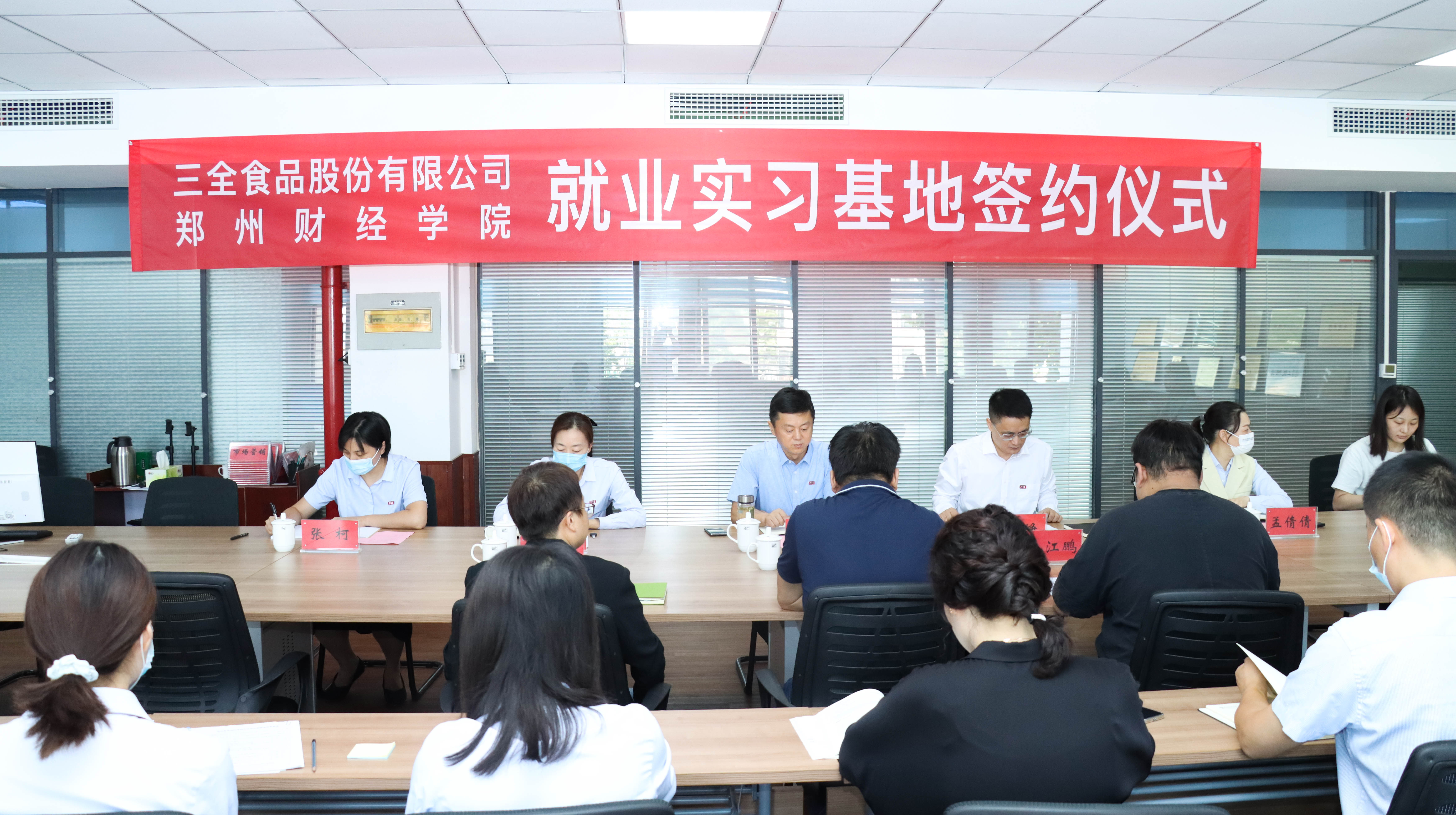 9月28日上午,beat365官方网站与三全食品股份有限公司就业实习基地签约仪式在beat365德惠楼202会议室举行。三全食品股份有限公司食品供应链交付中心总监张云强、营销中心人资总监赵晓景、人力资源招聘培训经理毛江鹏;beat365官方网站党委副书记董学力,相关二级学院党总支书记及就业指导服务中心人员参加此次签约仪式。仪式由就业指导服务中心主任谷峥主持。