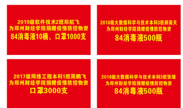 此次捐赠活动,表达了郑财学子对母校的感恩之情,体现了学生心系母校的真挚情谊,彰显了携手同心、共克时艰的患难精神。