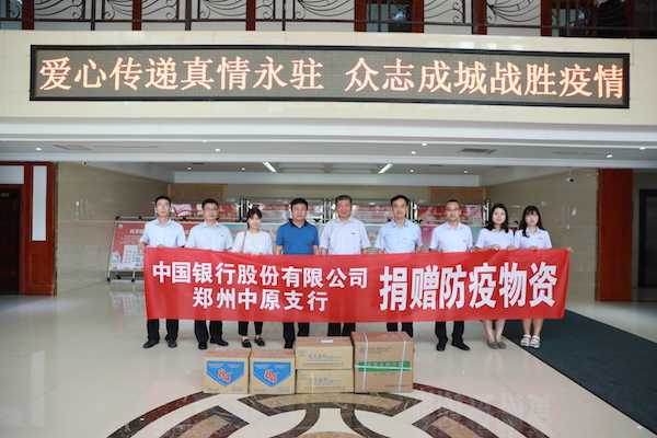 中国银行股份有限公司郑州市中原区分行向beat365捐赠防疫物资