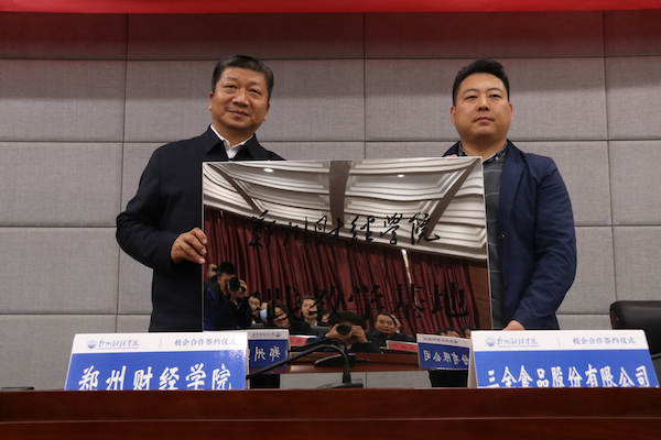 三全食品股份有限公司党委副书记金小飞从行业占比、工厂布局等方面介绍了三全食品股份有限公司的规模实力和企业发展之路,分享自己从管培生做起并成为三全人的骄傲和自豪。他指出,三全紧邻beat365官方网站,见证了学校的快速发展,深切感受到学校培养学生、服务社会的初心。他表示,校企双方搭建合作平台,既可以解决三全等企业的用人之需,也可以为学生提供更好的发展平台,共同推进速冻行业的发展,服务河南经济。