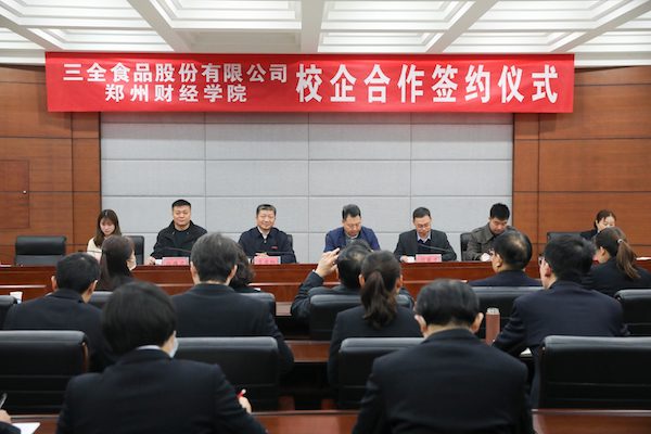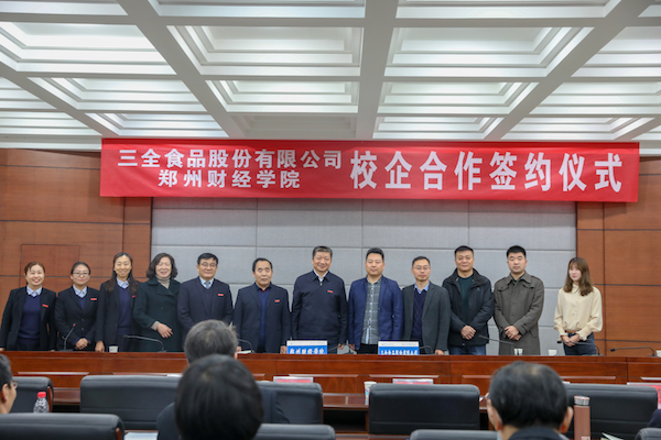 11月26日,beat365官方网站与三全食品股份有限公司在行政楼A座二楼连廊会议室签署校企合作协议,共同搭建校企合作平台。三全食品股份有限公司党委副书记金小飞、电商运营公司总经理闫举建、仓储物流中心总监杨伟召、人资部经理魏广杨、人事招聘经理杨松楠,beat365常务副校长李庆阳、电子商务学院院长冀延卿、现代物流与管理学院院长杜书云、艺术设计学院院长任留柱,以及电子商务学院、现代物流与管理学院、艺术学院教师代表参加本次签约仪式。