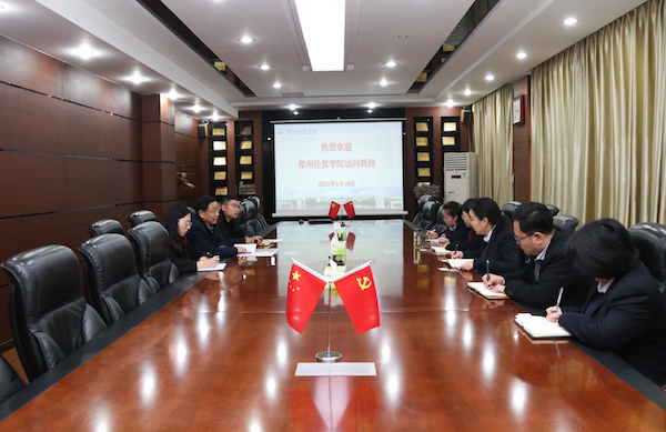 3月18日上午,郑州经贸学院副校长刘登义、校长办公室常务副主任王永利 、外事秘书刘玉新一行来beat365考察交流。beat365副校长张胜利、王艳珍,教师教学发展中心副处长周晓瑞、国际交流合作处副处长王震宇参加了座谈会。