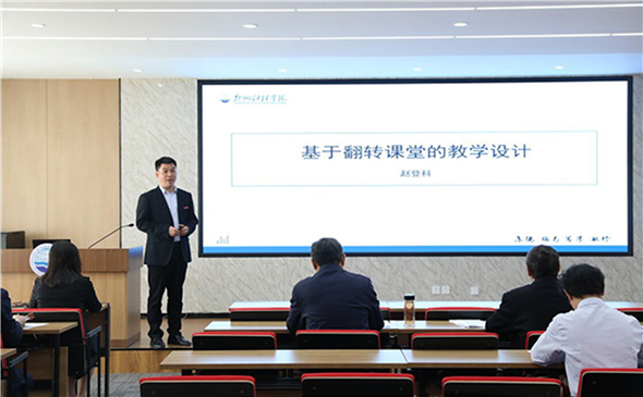 在名师展示环节,赵登科副教授以“基于翻转课堂的教学设计”为主题,阐述了自己的教学理念,从课前预设、知识回顾、作业点评、新课导入、学生展示、深化理解、能力提升、课后延伸、总结归纳等环节进行了精彩展示,以及突出如何在教学设计中融入思政元素。温毓敏副教授从培养学生专业认知、教授学生学习方法、培养学生职业素养、树立学生职业信心四个目标入手,着重讲述了“3个三”教学设计模式,即:三个教学环节、三个教学目标、三个创新手段,并初步演绎了自己的教学主张。