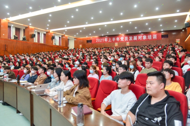 4月27日下午,学校党校在图书馆大报告厅举办2021年上半年党员发展对象培训班开班仪式暨第一讲党课。参加此次培训的发展对象共有548名,其中学生532名,教师16名。校党委书记李国强应邀为全体发展对象作动员讲话并上第一讲党课。
