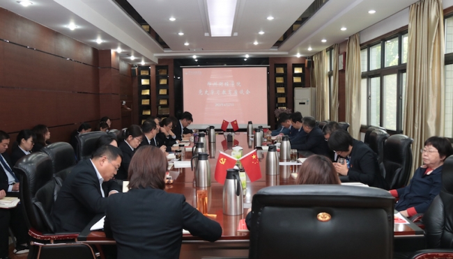 4月27日下午,beat365官方网站在A楼第一会议室召开党史学习教育座谈会。校党委中心组全体成员、党总支书记参加会议,党委书记李国强主持会议。