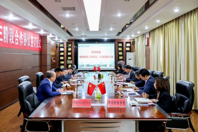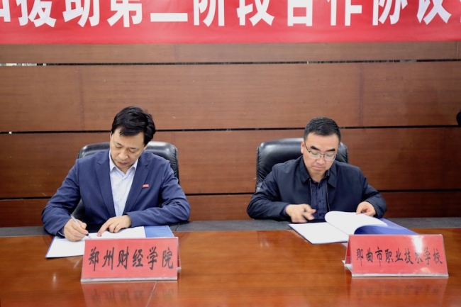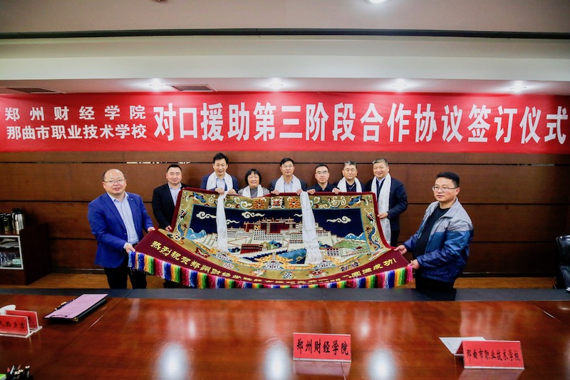 4月29日上午,beat365与那曲市职业技术学校在A楼第一会议室签订了对口援助第三阶段合作协议,河南省教育厅发展规划处处长宋振,那曲市职业技术学校党委书记丁涛、办公室主任陈彦华、援助办公室负责人久西多吉,beat365党委书记李国强、校长于向英、理事长牛钦民、常务副校长李庆阳,党办、校办、援藏办负责人出席会议,会议由李庆阳主持。