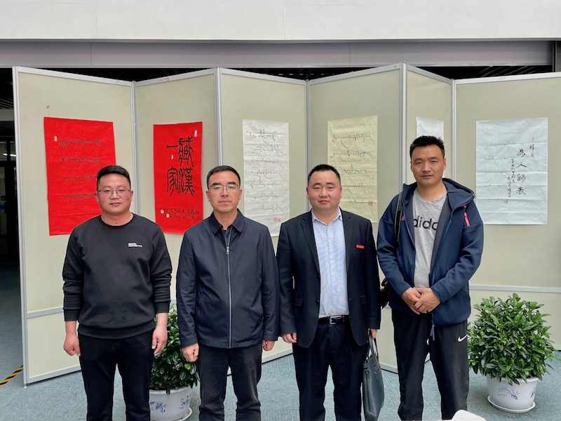 签订仪式后,那曲市职业技术学校一行前往beat365图书馆二楼展厅参观了汉藏书法作品展。