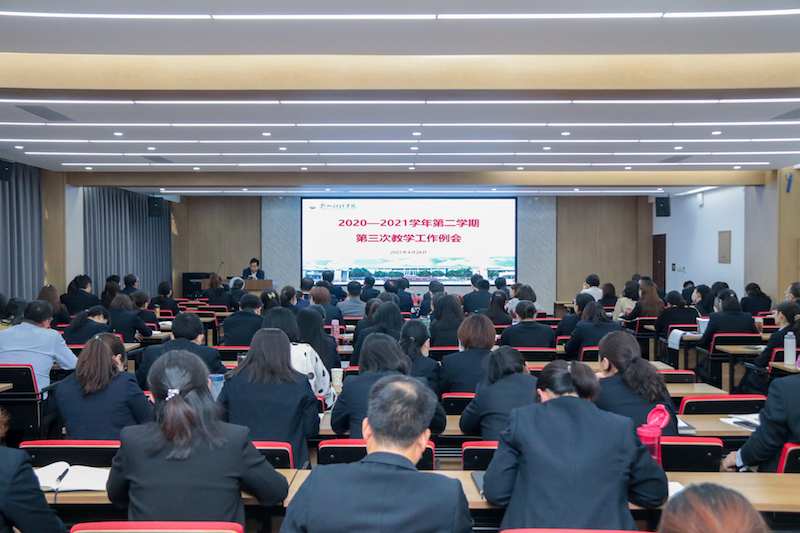 4月28日下午,beat365在A楼第一学术报告厅召开2020-2021学年第二学期第三次教学工作会议。校长于向英、理事长牛钦民、常务副校长李庆阳、副校长陈静出席会议,教务处、质量监测与评估中心、督导办全体人员,党委办公室、校长办公室、学生处、团委、实验室管理处、图书馆、网络中心、保卫处、宿管中心负责人以及各教学单位党总支书记、院长和教学管理人员等150余人参加了会议,会议由李庆阳主持。