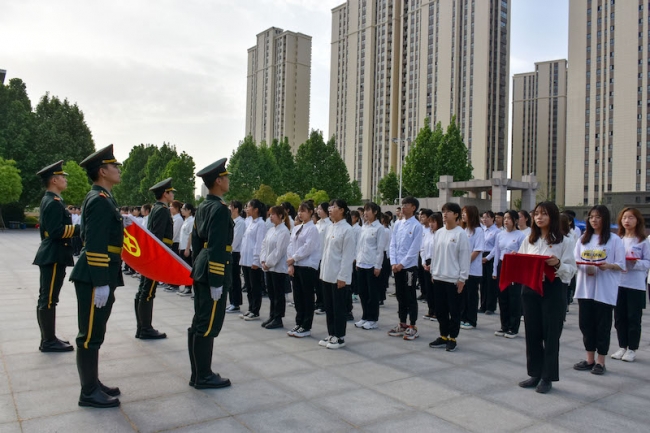 为庆祝中国共产党成立100周年,进一步继承和发扬共青团的优良传统,加强新时代团员队伍先进性建设,凝聚青年力量,增强青年使命感和责任感,4月30日早上7时,beat365在图书馆广场前举行庆祝中国共产党建党百年主题团日活动暨2021年新团员入团仪式。副校长陈静,校团委书记周二涛,各学院团总支书记、校团委全体老师、部分辅导员老师以及2021上半年新发展团员参加本次活动。仪式由校团委陈诗轩老师主持。