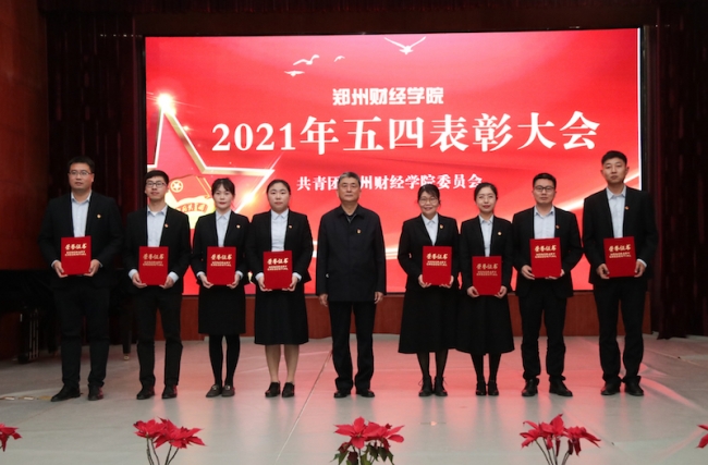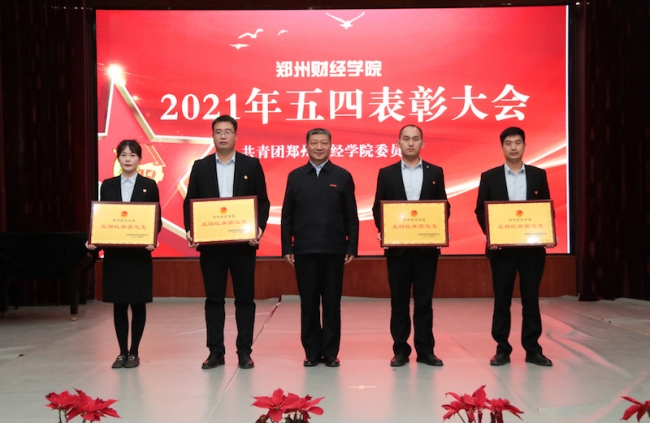 常务副校长李庆阳为“五四红旗团总支”获得者颁奖