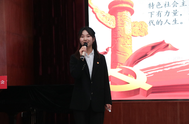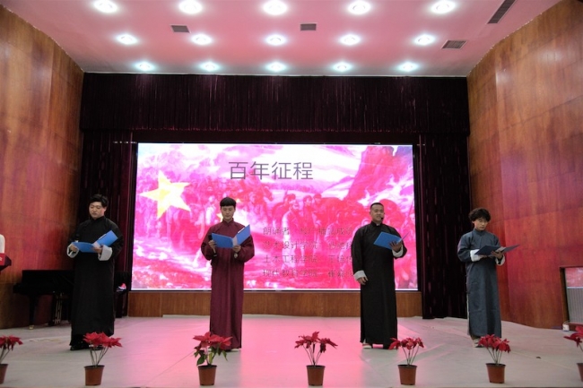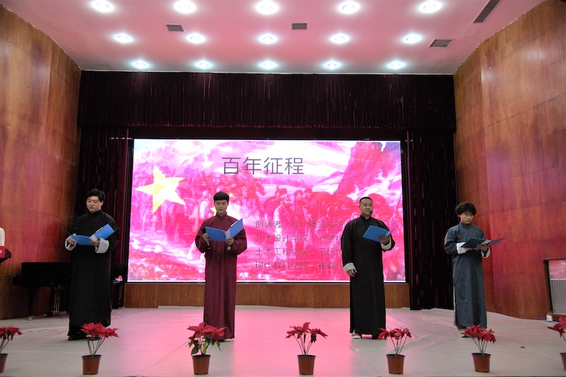 大会现场,校广播站成员饱含深情地朗诵了红色经典诗篇《百年征程》,讲述了党的百年革命历史,将观众们的思绪带回到那段硝烟弥漫的峥嵘岁月。