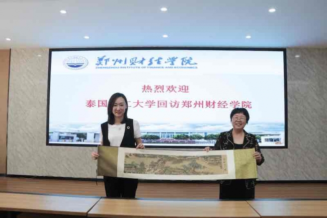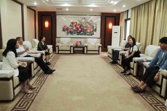 会谈中,王珊珊首先转达了博仁大学副校长Pattanant Petchchedchoo对理事长牛钦民及学校领导的问候,对beat365第一期教师博士班在泰国的学习给予了高度评价,对去年在疫情期间给博仁大学捐赠防疫物资表示衷心感谢。李庆阳对王珊珊一行的回访表示热烈的欢迎,并转达了理事长和学校领导的问候,对两校间的友好合作给予了充分肯定。接着双方就博士培养、专业方向拓展、共建中泰师资库、共办国际学术研讨会、“一带一路”国际访学交流等内容进行了深入探讨,并达成了共识。