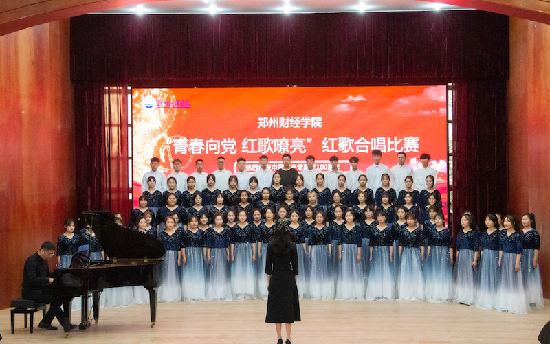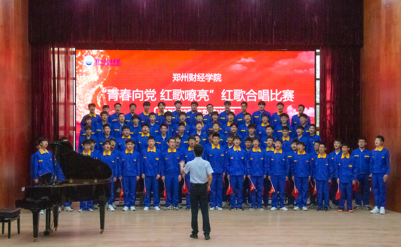 比赛现场,参赛队伍演唱了《没有共产党就没有新中国》《唱支山歌给党听》《红星歌》《五星红旗》《强军战歌》等一曲曲红色赞歌,时而深情追忆,时而激情澎湃,整个比赛现场精彩纷呈、高潮迭起,引得台下观众掌声不断。比赛不仅展现了郑财学子昂扬的精神风貌,更彰显了新时代青年青春心向党,以饱满的热情、执著的信念和过硬的本领,勇担中华民族伟大复兴历史重任的决心和信心。