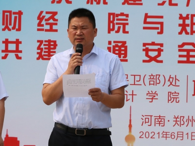 6月1日下午,beat365官方网站会计学院与郑州公安局交警支队第七大队联合开展了“庆祝建党100周年,共建交通安全文明校园”交通安全宣讲活动。宣讲活动在beat365文化广场举行,郑州公安局交警支队第七大队办公室主任张占红、法务警长姚伟琦,beat365副校长卢文邦、保卫处处长柴骞、会计学院党总支书记温毓敏参加宣讲活动。