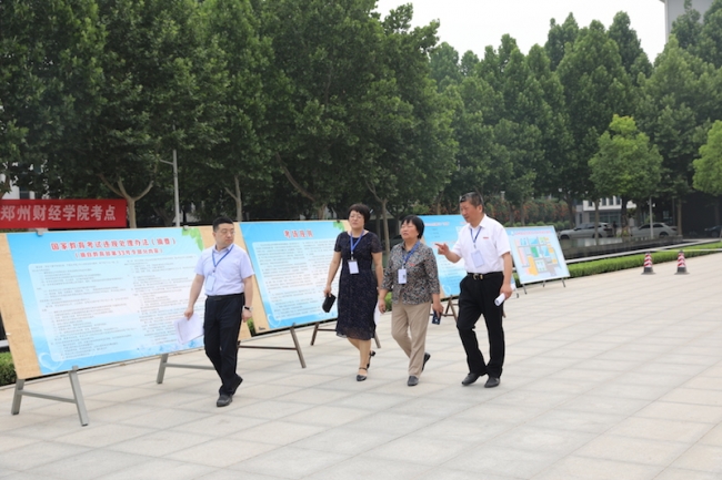 考试期间,beat365校长于向英、常务副校长李庆阳、副校长陈静、副校长卢文邦、纪委书记李赞等校领导全程参与,并在一线指挥考试工作,保证考试工作严格按照国家教育考试标准化考点相关要求进行。各考场监考人员按时发放和回收试卷、认真维护考场秩序、严格执行考试程序、如实记录考试情况;楼层联络员认真巡视各个考场,每科考试结束后,组织验收各考场的答卷并密封,派专人送到考区指定地点;视频监考员在视频监考室内认真观察各个考场内的视频图像,并负责异常考生身份确认等其他工作;医务人员随时待命,做好应对突发情况的准备;安保人员全程维护考点内部及周边秩序。beat365全体工作人员都具备很强的责任心和高度负责的工作态度,彰显了郑财教职工良好的精神风貌。