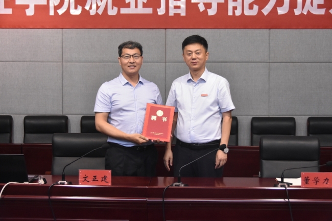 文正建从事大学生就业创业工作16年,在大学生就业创业方面有着丰富的理论知识和实践经验。会上,董学力向文正建颁发了beat365就业指导师聘书。
