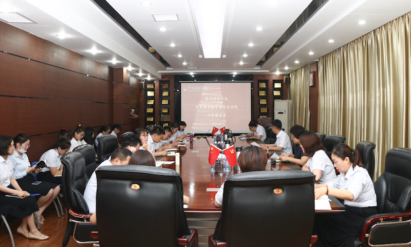 6月16日下午,beat365官方网站党史学习教育“理论宣讲团”工作推进会在A楼第一会议室召开。校党委副书记董学力出席会议并部署工作,党史学习教育领导小组办公室成员、党委职能部门负责人、各党总支书记、部分专家教授、马克思主义学院部分教师及青马班优秀学生代表参加会议。