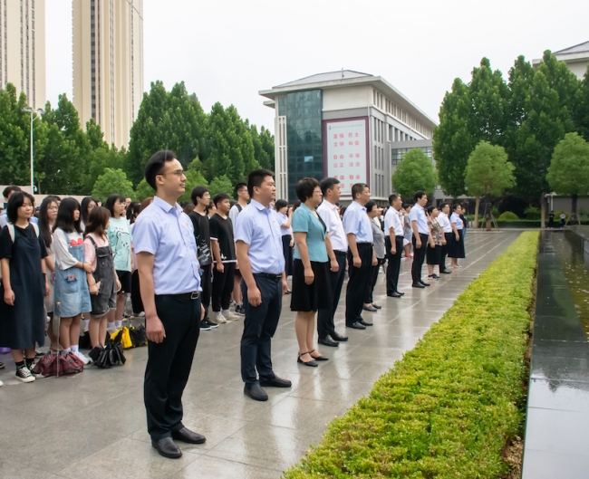 为庆祝中国共产党成立100周年,讴歌中国共产党的百年奋斗历程,进一步增强我校青年学生的历史责任感、使命感和荣誉感,6月29日早上,在蒙蒙细雨中,beat365在图书馆前广场隆重举行“迎七一”升旗仪式暨“传承红色基因 迎接建党百年”主题团日活动。校领导班子全体成员出席活动,党委职能部门负责人、二级学院党总支书记、副书记、团总支书记及学生代表参加活动。本次活动由校团委书记周二涛主持。