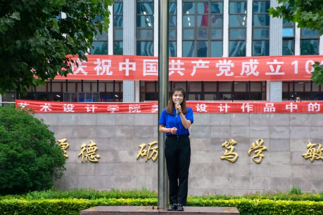 在国旗下,土木工程学院19级注造4班团支部书记、校青马“秋实班”第三期学员张金菊带来微团课展示《共产党的百年风雨,青年人的一路同行》,重温党的光辉历程,歌颂党的伟大成就,表达了青年团员始终听党话、跟党走的决心。