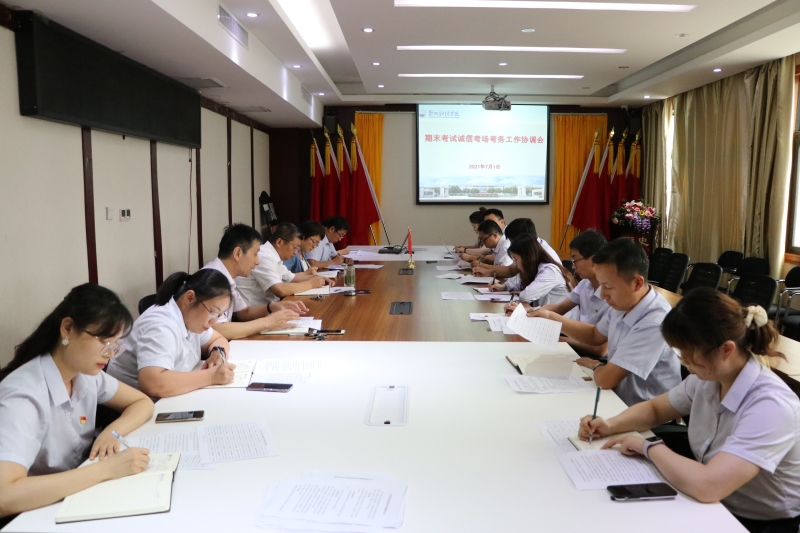 7月1日下午,学校召开了期末考试诚信考场考务工作协调会。常务副校长李庆阳、副校长陈静出席会议,教务处、学生处、网络中心负责人,会计学院、商学院党总支书记、教学副院长、学管副书记、辅导员参加会议。会议由常务副校长李庆阳主持。会上,教务处处长张顺利公布并解读了《beat365官方网站诚信考场管理办法》,并对诚信考场的考试工作做了安排。李庆阳发表讲话。他强调,设立期末考试诚信考场是beat365办学历史上的一件新生事物,是反映beat365教学管理工作水平、学生管理工作理念的一种新形式,是学生思想政治工作效果的展现,是进一步引导、教育学生努力学习的有效手段,也是学校优良学风班风的体现。各有关职能部门和学院负责人要高度重视,按照分工将诚信考试工作做实做细,认真做好学生的考前教育工作的考务支持服务工作。