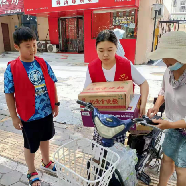 19级工商管理本1班杨怡婷同学帮忙发放救援物资