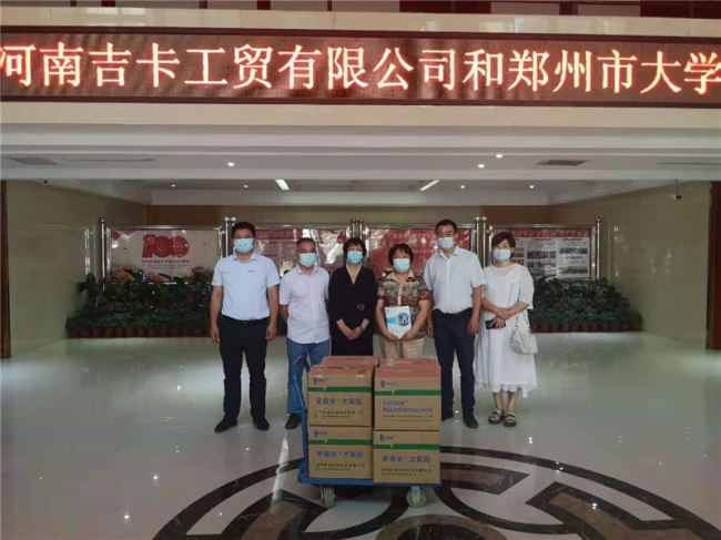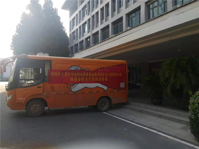 河南吉卡工贸有限公司和郑州市大学生创业就业慈善基金向beat365捐赠消毒物资