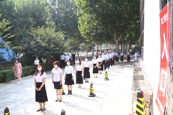 上午8时,校党委书记李国强、校长于向英来到应急演练现场指导工作,并对演练提出具体要求。疫情防控工作领导小组成员、各工作组及参演教师在前期预演基础上,有条不紊地开展应急演练。首次演练包括进校、入寝、就餐、上课四个场景,整场演练各部门通力合作,分工明确,责任到人,参演教师按照应急演练的路线和要求,熟练掌握和演示各场景下的疫情防控要求和应急处置流程。