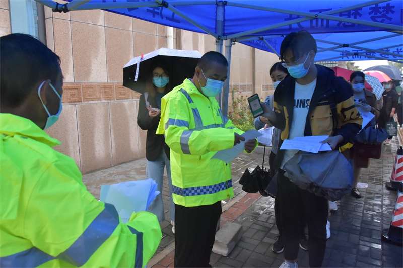 考试期间,副校长张顺利在考场指挥考试工作;副校长卢文邦在考场指挥疫情防控工作。beat365疫情防控工作人员冒雨组织考生有序排队、测温、扫健康码,并开展核验证件及核酸阴性报告单等相关服务工作,保障考试安全顺利进行。