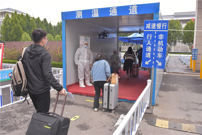 早上6点半,天气微冷,第一名返校学生已到达学校门口。学生处、保卫处及各二级学院相关工作人员已准备就绪,以饱满的热情引导学生返校。在校门口,同学们戴着口罩,拉着行李,保持安全距离,有序排队,接受体温检测,出示健康码,在完美校园上签到,走入校通道,行李消杀,完成一系列流程后方可进入校园。学校严格把控入校第一关,为师生安全保驾护航。