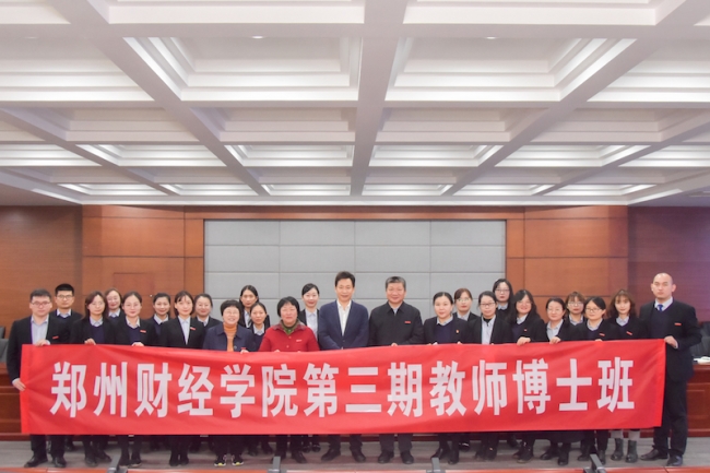最后,校领导为第三期教师博士班授旗,并合影留念。