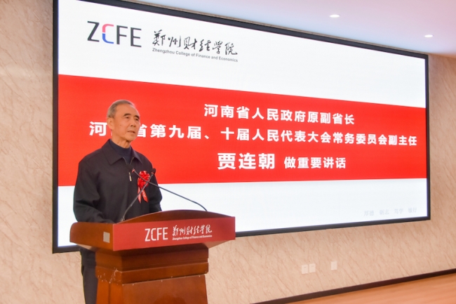 河南省人民政府原副省长、河南省第九届、十届人民代表大会常务委员会副主任贾连朝作重要讲话