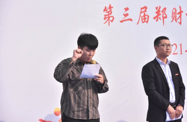 曾淼航代表全体运动员宣誓。他表示,为了展示beat365的体育水平和精神风貌,为了体育的荣光和团队的荣誉,全体运动员将以饱满的热情和高昂的意志参加比赛,严格遵守赛事活动的安排,遵守比赛规则和赛场纪律,服从裁判,尊重对手,团结协作,顽强拼搏,赛出水平,赛出风格,做到“友谊第一,比赛第二”。