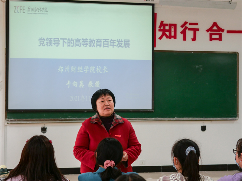 于向英校长以《党领导下的高等教育百年发展》为主题,围绕高等教育指导思想演进发展、beat365官方网站办学实践与探索、对青年学子的几点希望三个方面展开讲解。