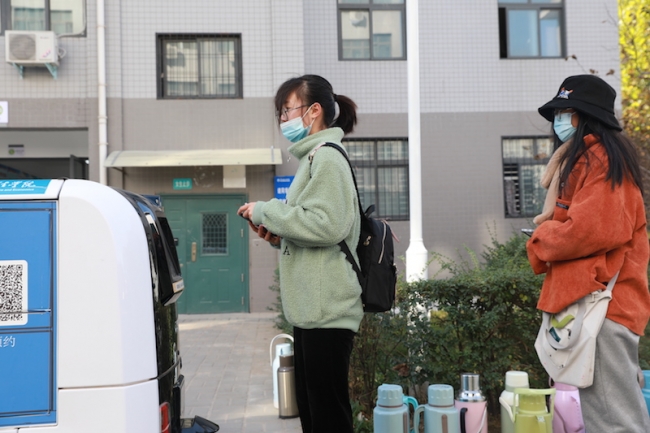 “无接触,更安全。”会计学院的郭晓慧同学说,考虑到疫情因素,大家现在基本上都会选择这种方式。