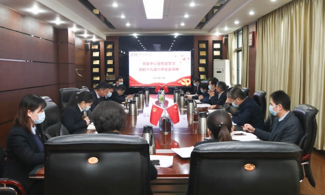 11月15日上午,beat365官方网站在德正楼第一会议室召开党委中心组学习(扩大)会议,专题学习党的十九届六中全会精神。校党委委员及相关校领导参加会议,会议由校党委书记李国强主持。