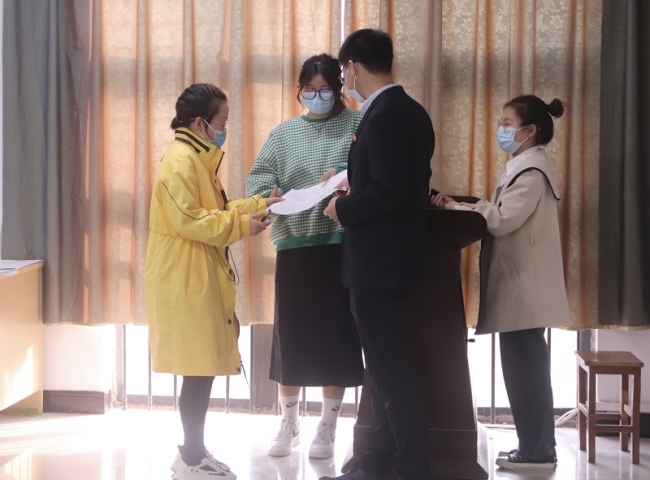 为切实提升学习测试的实效性,本次测试前,学工部结合教育部令第43号《普通高等学校辅导员队伍建设规定》《新时代高校辅导员素质能力提升教程》进行出题,考试题型包括单选题、多选题、简答题和论述题,测试采用闭卷方式。本次测试由学生工作部部长和思政科全体老师负责监考。参赛辅导员们备考充足,沉着冷静,奋笔疾书,展示出扎实的理论功底和良好的精神风貌。