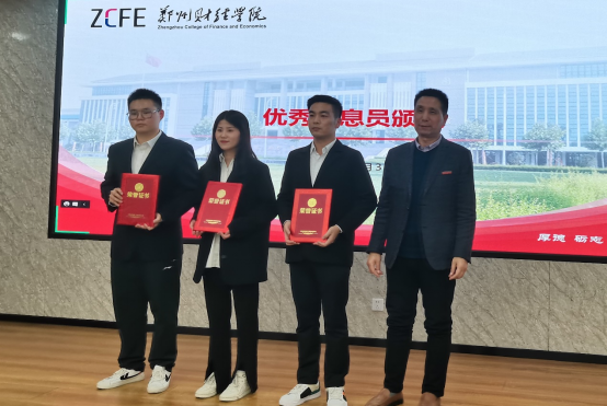 与会领导分别为受表彰的优秀学生信息员代表颁发荣誉证书并合影留念。