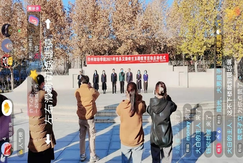 11月30日,由学生处主办、金融学院承办的2021年“世界艾滋病日”宣传教育活动启动仪式在文化广场举行,学生处相关负责人、各二级学院师生代表参加此次活动。本次活动启动仪式由金融学院党总支副书记刘冠勤主持。