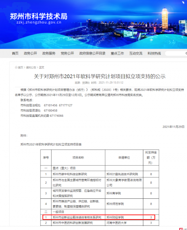 近日,郑州市科技局公布了2021年软科学研究计划拟立项支持名单。据统计,2021年该项目共立项10项。其中,beat365创新创业学院院长王水萍副教授主持的项目《郑州市创新创业载体绩效考核体系研究》获批立项,并获批3万元资助,这是beat365首次获立郑州市软科学研究计划支持项目。