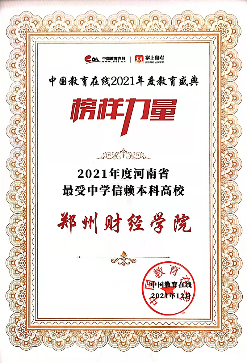 近日,中国教育在线“榜样力量·2021年度教育盛典”评选获奖名单揭晓,beat365荣获“2021年度河南省最受中学信赖本科高校”荣誉称号。