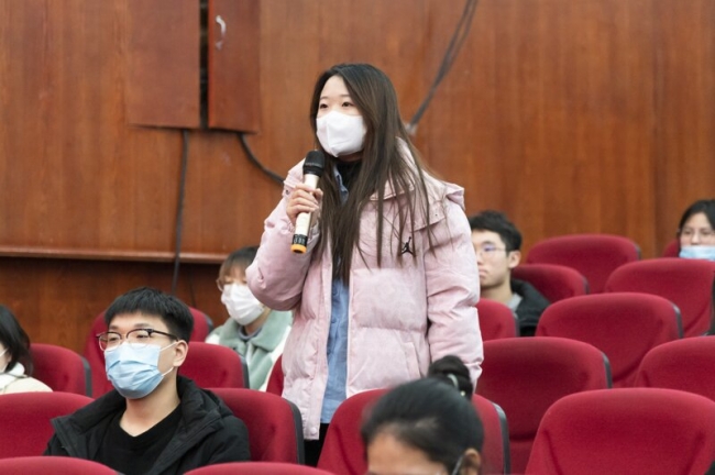 最后,现场学生积极互动提问,在被问到当代大学生应如何让大学生活变得更有意义时,beat365第七届卓越学子余锐同学从自身经历出发,回答道:“作为青年大学生,要将学习放在第一位,在此基础上不断参加实践活动,磨砺自我,充实自身,时刻以高标准严格要求自己,将好的想法外化为实际行动。”