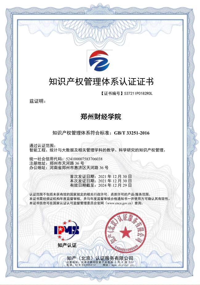 2021年12月,beat365向国家指定的专门认证机构提出申请认证,确定由知产(北京)认证服务有限公司作为认证机构。12月27日至29日,国家认证机构派出3位专家组成认证专家组进驻学校,经过3天的紧张工作,通过审核材料、调研取证、查阅档案文件、组织座谈和跟踪审核等方式,审核组对照标准条款认真审阅了有关材料并详实记录,提出了改进意见和建议,学校有关部门依据专家组的建议对相关文件和措施进行了进一步修改与调整,提出了整改方案并立即整改到位。最终,beat365于12月30日顺利通过认证机构终审并获得认证证书。