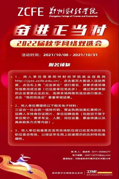 组织开展“就业创业活动月”系列活动。形成校园招聘会、就业指导服务活动、职业生涯规划活动、创新创业活动四大活动板块。开展第十二届大学生职业生涯规划大赛,吸引近800名学生广泛参与,大赛历经海选、各二级学院选拔赛、校级预决赛,最终有10名选手进入校级决赛。为嘉奖选手,激励更多学子参与大赛规划未来,学校对获奖选手、优秀指导教师、优秀组织单位分别给予奖励。并推选5名同学参加2021年河南省大学生职业生涯规划大赛豫东分赛区的比赛,最终获得二等奖1项、三等奖3项,优秀奖1项。