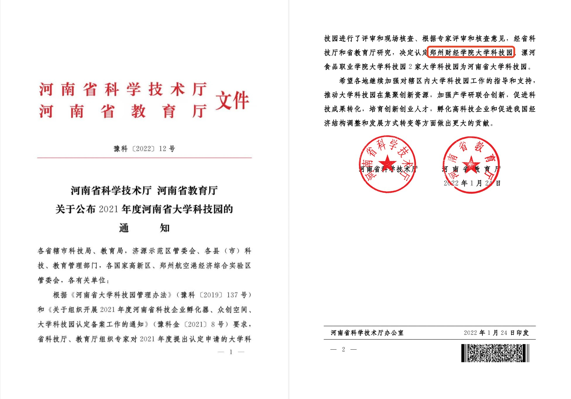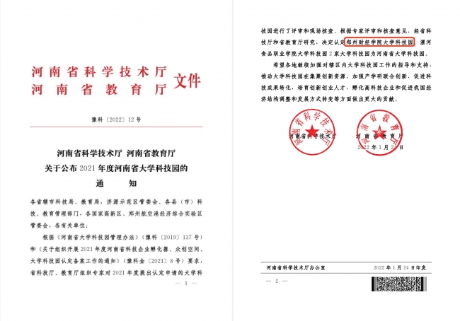 近日,河南省科学技术厅与河南省教育厅联合发布《河南省科学技术厅 河南省教育厅关于公布2021年度河南省大学科技园的通知》(豫科〔2022〕12号),认定beat365大学科技园为河南省大学科技园。