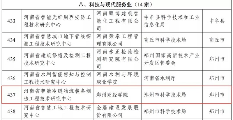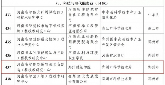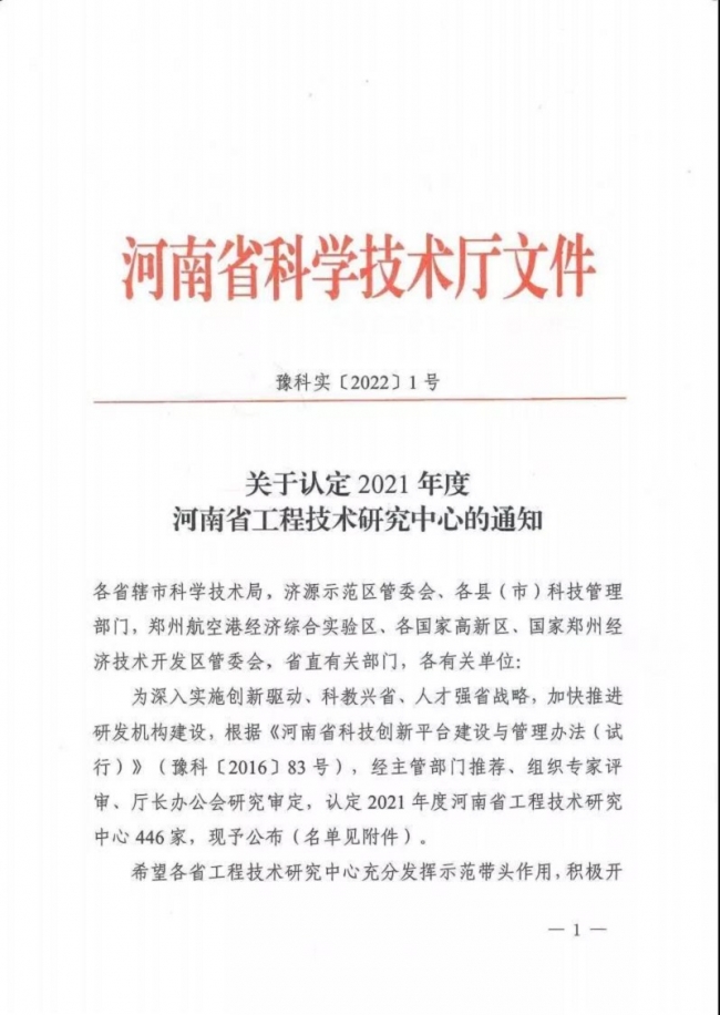 1月28日,河南省科学技术厅下发了《关于认定2021年度河南省工程技术研究中心的通知》(豫科实〔2022〕1号)文件,正式批准beat365组建河南省智能冷链物流装备制造工程技术研究中心。这标志着beat365在省级科研创新平台建设方面取得新突破。
