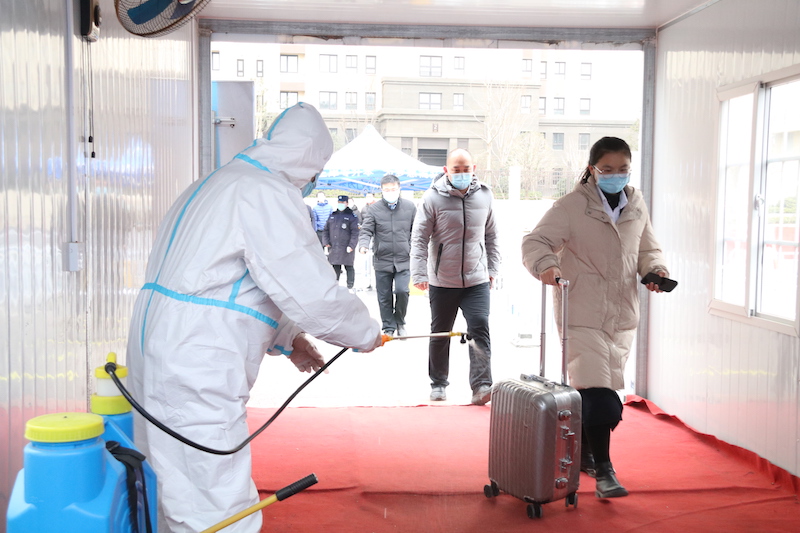 学生报到期间,要严格按照返校批次入校,原则上不在当日报到范围内的学生,当日不予准入。入校学生需提前按照学院、专业有序排队,间隔一米以上距离,带好口罩,提前扫描健康码,依次亮码通过测温通道,体温正常者方可进入校园。若出现体温异常者,应迅速带离到临时观察区,由分诊台医生二次复测体温,并做进一步的医学观察。对现场密切接触人员和涉及的场所、物品进行全面喷淋消杀。
