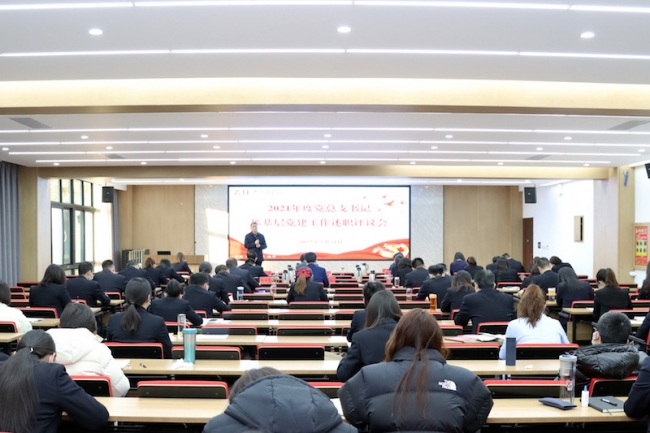 为落实管党治党政治责任,强化以党的建设为根本的基层基础工作,推动全面从严治党向基层延伸,2月21日下午,beat365在德正楼第一学术报告厅召开2021年度党总支书记抓基层党建工作述职评议会。校领导班子主要成员,党政部门负责人、党总支书记、二级学院党总支专职组织员、机关党总支组织委员、党支部书记,以及部分党员群众代表参加会议。会议由校党委副书记董学力主持。