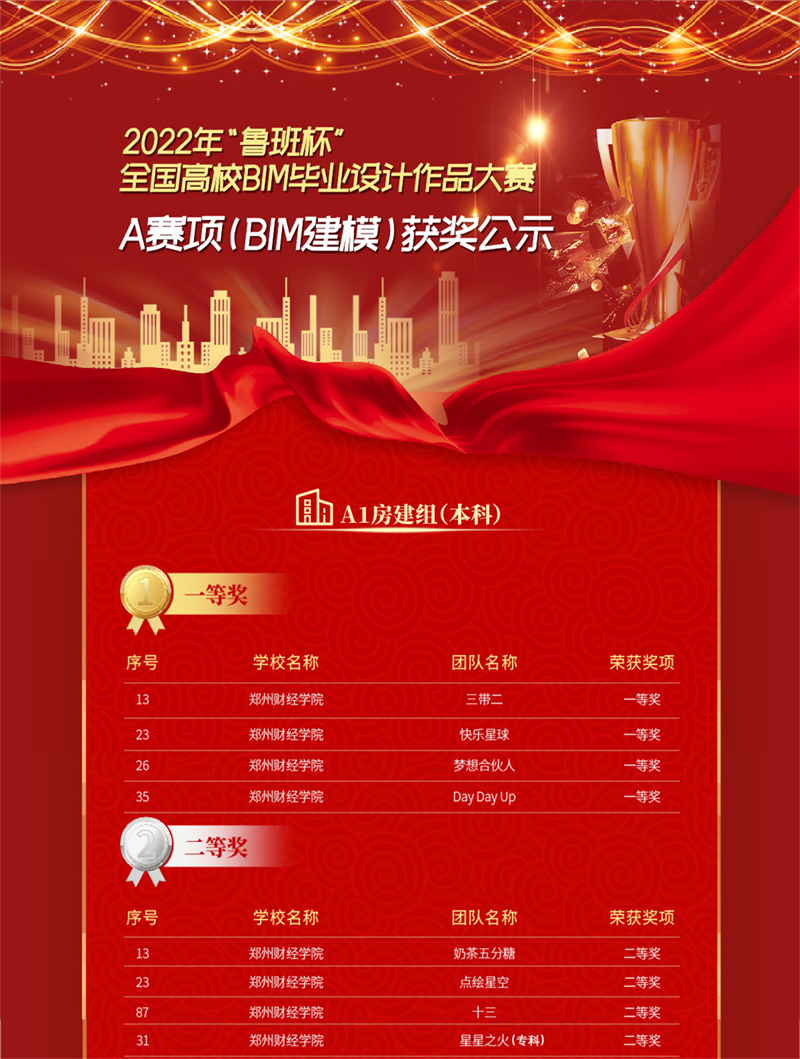 3月3日,2022年“鲁班杯”全国高校BIM毕业设计作品大赛A赛项(BIM建模)获奖结果公示,beat365土木工程学院参赛学子在全国350余所院校950余组作品中脱颖而出,荣获本科组一等奖4项、二等奖3项,专科组二等奖1项。