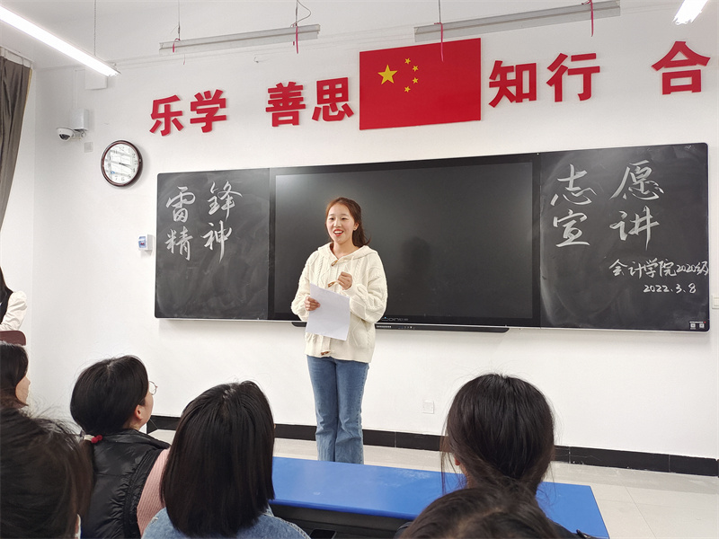 会计学院20级师生于3月8日下午在J1-106教室开展了学习雷锋精神宣讲会。宣讲会上十名优秀志愿者代表分享了学习雷锋精神的感悟心得和个人志愿经历,让同学们对新时代雷锋精神的内涵有了更深刻的理解。